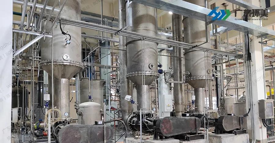多效蒸发器是指将多个蒸发器连接起来的系统,将前一效蒸发器蒸发出来的二次蒸汽引入下一效蒸发器作为加热蒸汽,并在下一效蒸发器中冷凝为蒸馏水。目前多效蒸发废水处理中多采用竖式降膜蒸发器,为保证每一效的蒸发强度,效间的温度差要不小于12℃。同时,为有效降低废水中的氯离子对设备的腐蚀,要控制一效蒸发器中的蒸发温度。因此,在实际生产中,竖式降膜多效蒸发系统的蒸发器效数通常少于4效。广东长运娱乐多效蒸发系统广泛适合于危废行业、锂电池行业、制药行业、化工行业、食品行业、生物发酵行业等液体物料的蒸发浓缩结晶过程。
