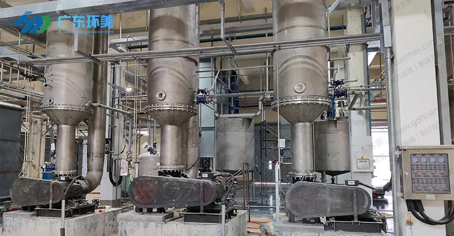多效蒸发器是指将多个蒸发器连接起来的系统,将前一效蒸发器蒸发出来的二次蒸汽引入下一效蒸发器作为加热蒸汽,并在下一效蒸发器中冷凝为蒸馏水。目前多效蒸发废水处理中多采用竖式降膜蒸发器,为保证每一效的蒸发强度,效间的温度差要不小于12℃。同时,为有效降低废水中的氯离子对设备的腐蚀,要控制一效蒸发器中的蒸发温度。因此,在实际生产中,竖式降膜多效蒸发系统的蒸发器效数通常少于4效。广东长运娱乐多效蒸发系统广泛适合于危废行业、锂电池行业、制药行业、化工行业、食品行业、生物发酵行业等液体物料的蒸发浓缩结晶过程。