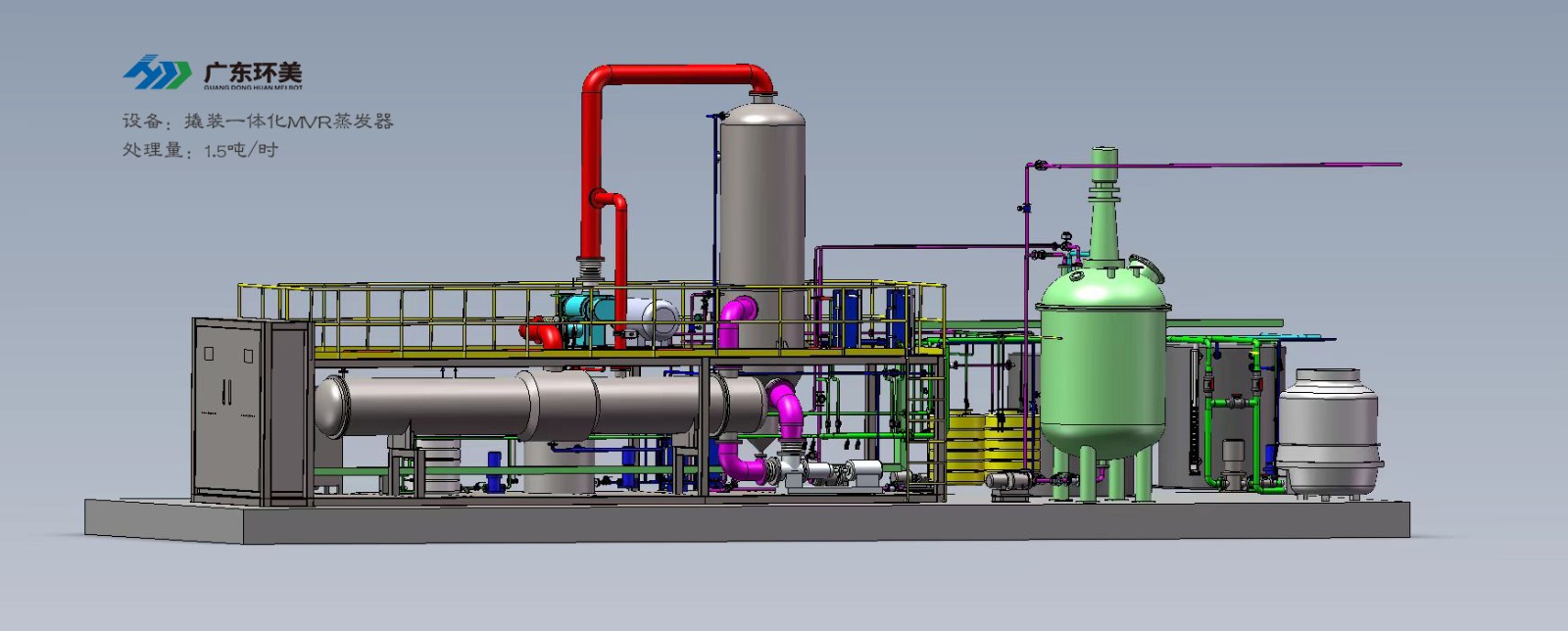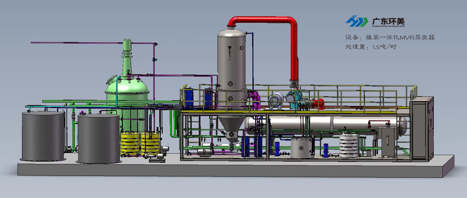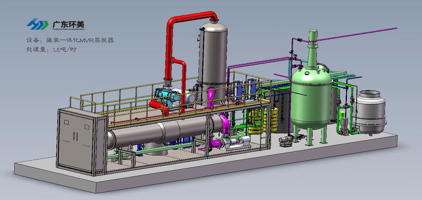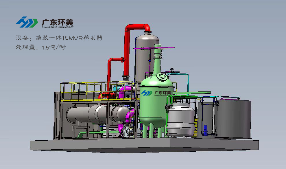 设计能力:1.5t/h撬装MVR蒸发装置