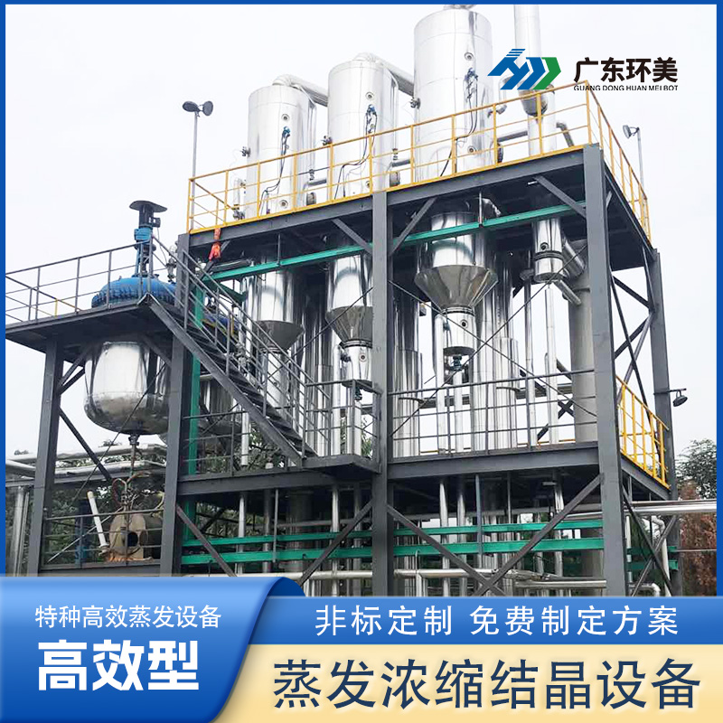 多效蒸发系统应用领域:单效、双效、三效、多效强制循环式蒸发器,适用于有结垢性、结晶性、热敏性(低温)、高浓度、高粘度并且含不溶性固形物等化工、食品、制药、环保工程、废液蒸发回收等行业的蒸发浓缩。广泛用于医药、食品、化工、轻工等行业的水或有机溶媒溶液的蒸发浓缩液,并可广泛用于以上行业的废液处理。尤其是适用于热敏性物料,蒸发器在真空低温条件下进行连续操作,具有蒸发能力高、节能降耗、运行费用低、且能保证物料在蒸发过程中不变性。